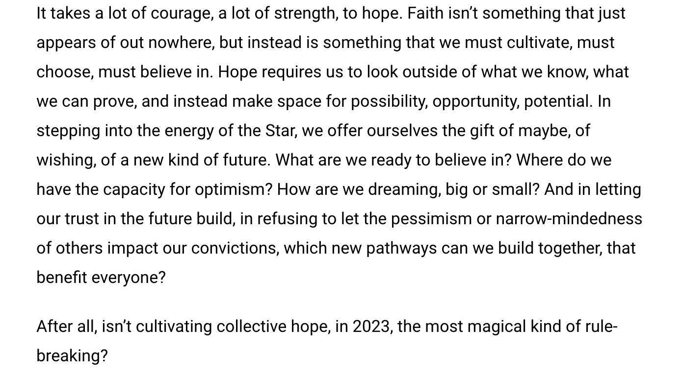 but regardless of how these moments strike us, the star sits on the other side of the lightning and flames, shining softly beyond the storm. no matter how long it takes us, that gentle starlight always reveals itself, reminding us of our capacity for dreaming.