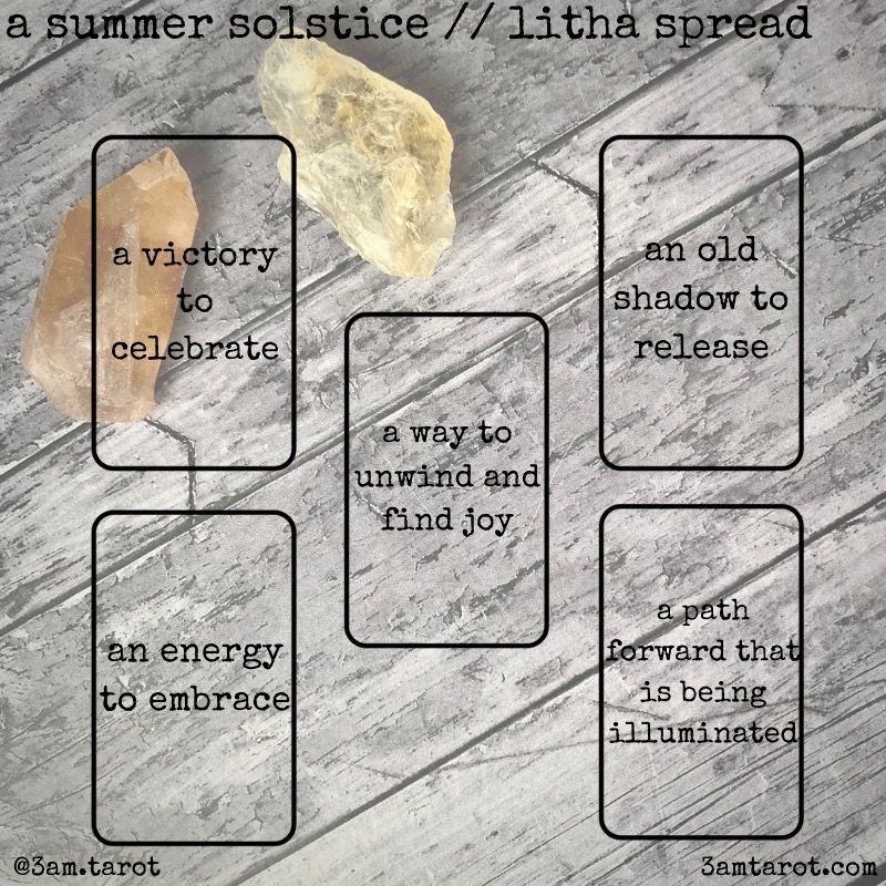 in addition to the spreads i shared a few days ago on the tower and eclipse season, i’ve also got two new spreads for you today - one focusing on the new moon and solar eclipse, and the other on the celebratory energy of litha. you can find both of these spreads on instagram as well as below, and i hope they help you tap into the magic and energy of this intense and powerful time of year.