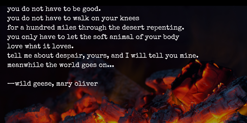 you do not have to be good. you can recognize your own capacity, fill your own cup, honor your own limits. you can ask for help, share what you have in excess, transform and evolve, recognize endings. you can celebrate something being finished, recognize a new beginning on the horizon, give yourself rest in the moments between.