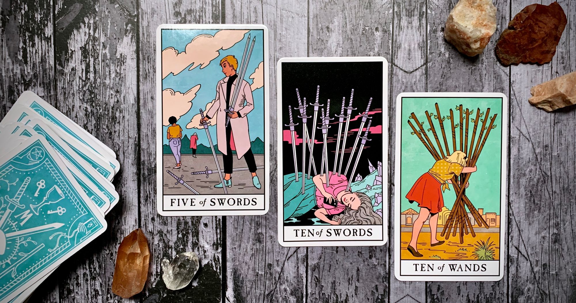 i don’t want to belabor this point, because i don’t think that i need to. but in the tarot, cards like the five of swords, the ten of swords, and the ten of wands come to mind: cards of short-sightedness, an obsession with winning, viewing the self as a victim, taking on a burden that is far too heavy to carry alone. these cards show us what happens when we do not request or receive kindness or understanding or help, when we instead are focused on pain, on conquest, on proving something in spite of the cost.