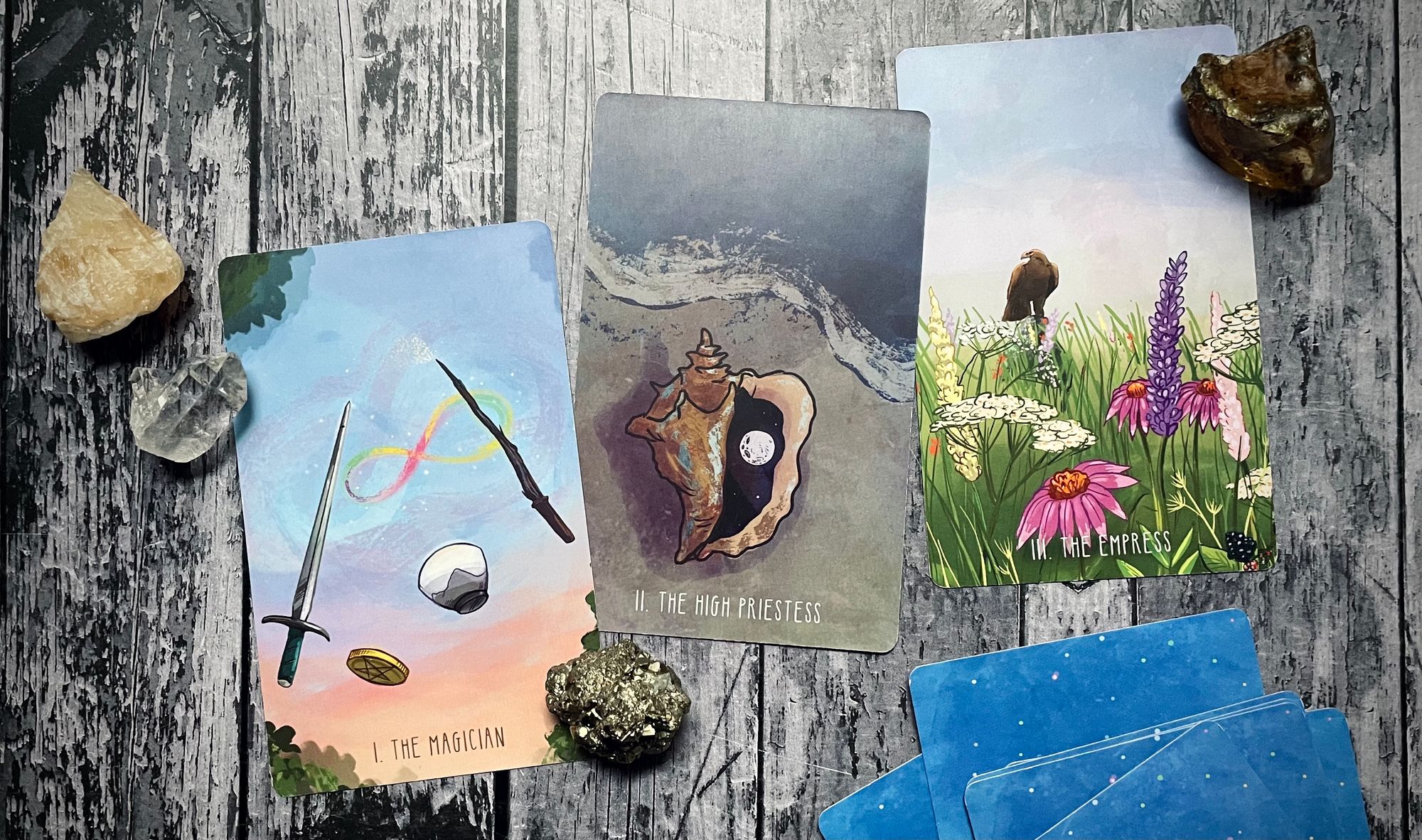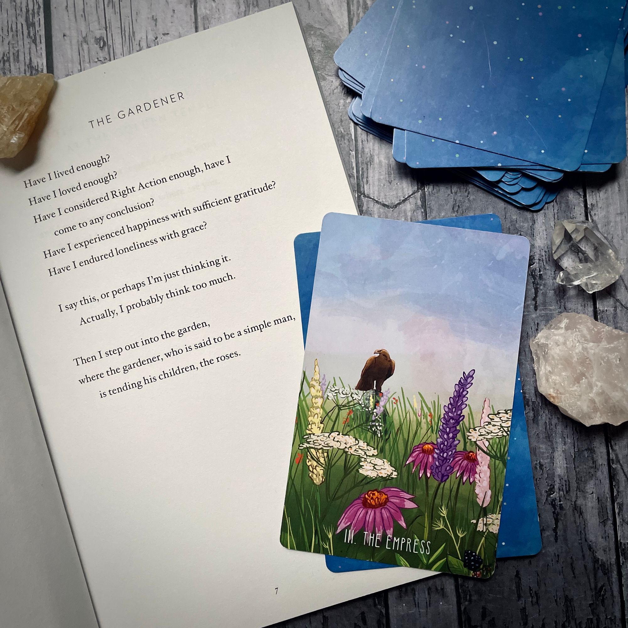 images in this post feature cards from the spacious tarot and a page from “a thousand mornings” by mary oliver. all photographs by meg jones wall.