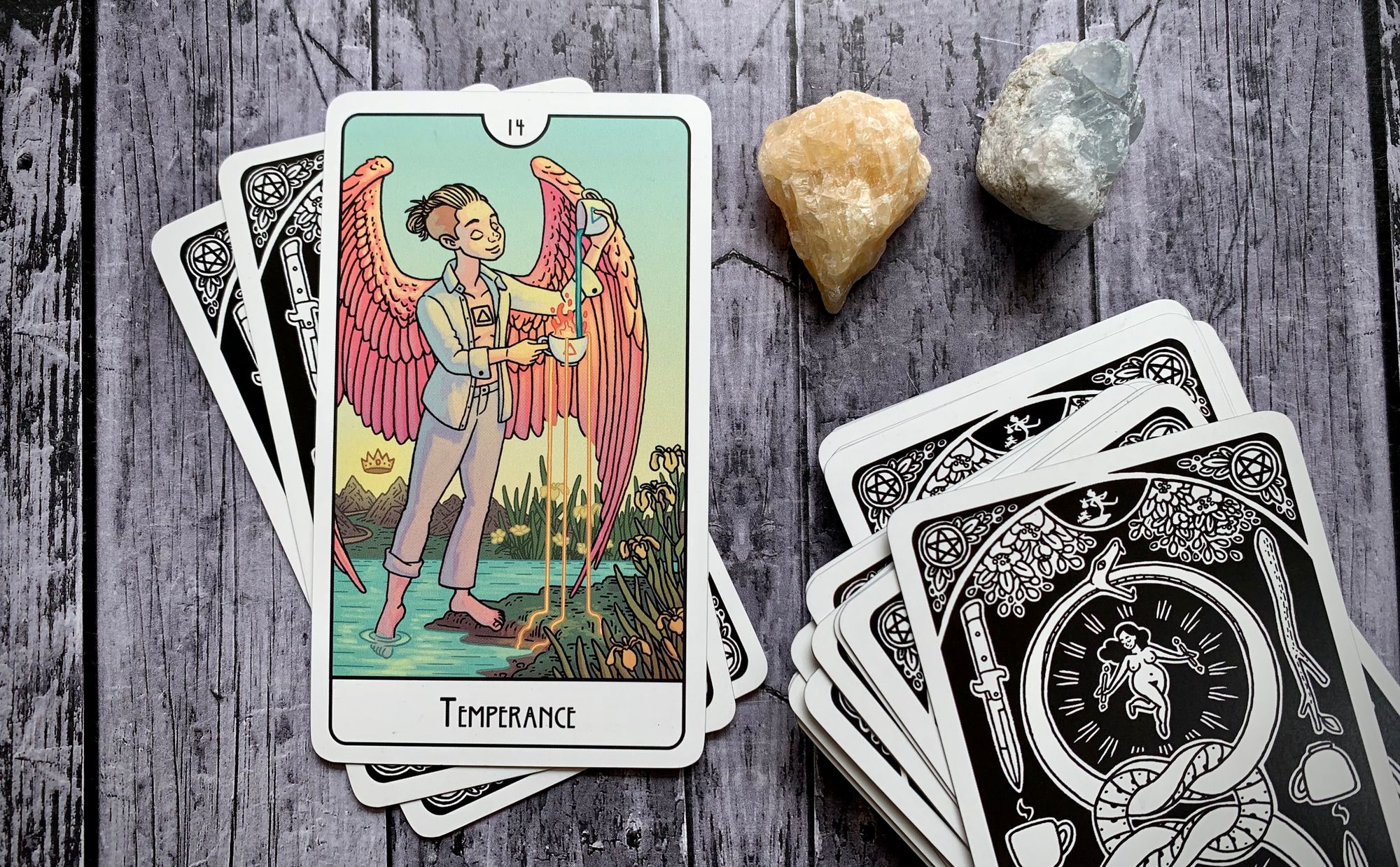 the lyrics of this song keep overlapping, getting tangled up with the cards i’ve been pulling in my readings. temperance is a tricky concept, a strange archetype, one of the most mysterious in the major arcana and one i’ve written about often. within the fool’s journey we see this card as one of moderation and harmony, a stepping back from progress in order to process, a balancing of opposing energies and desires. in the wake of death, after a challenging loss and a new, perhaps frightening sense of freedom, we work to find our footing, to recalibrate, to sit in still waters and cool any raging internal wildfires.