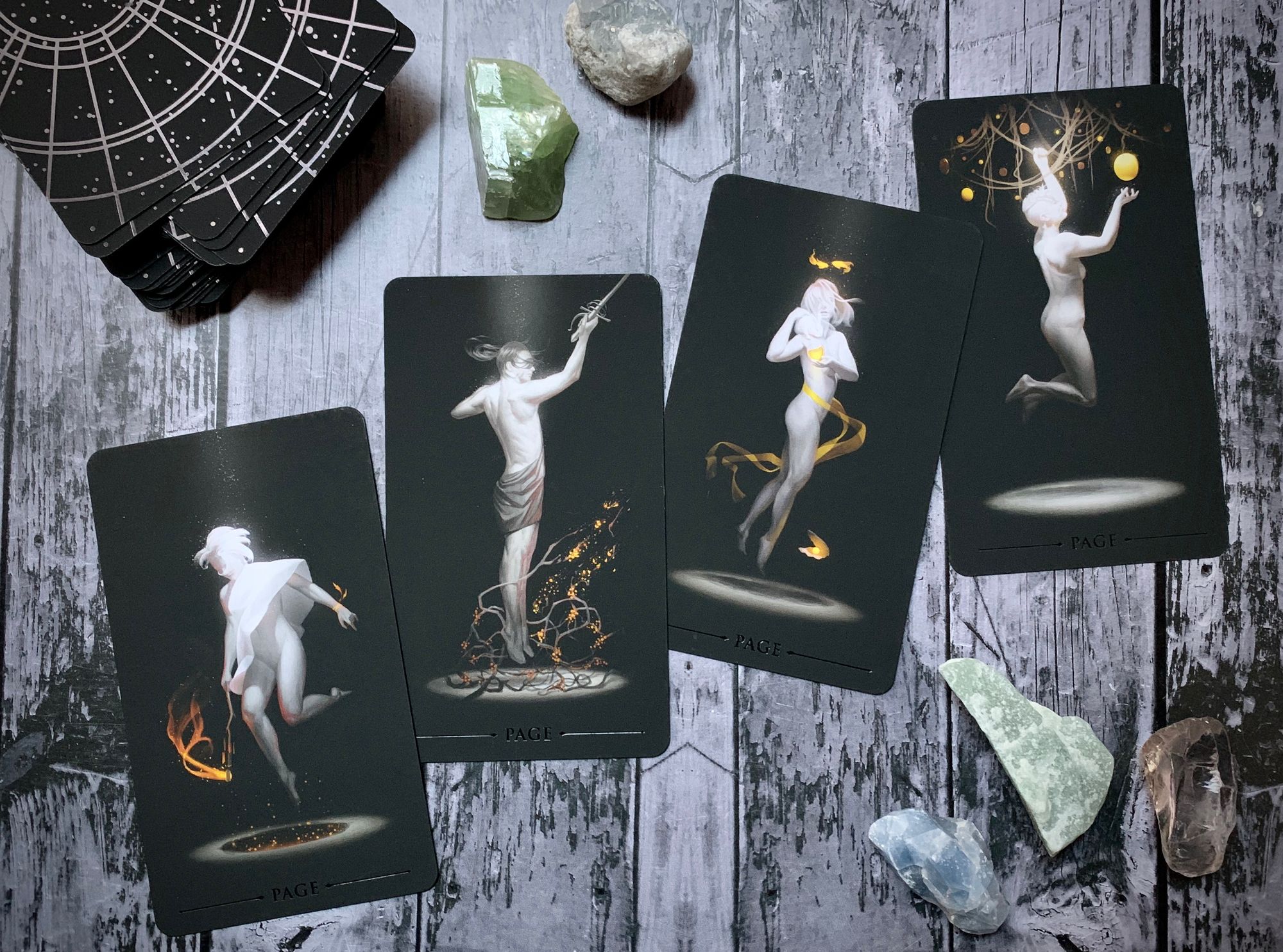 remember the pages of the court in the minor arcana, these children and students who are starting out on a brand new journey. just like the fool, they are stepping into the unknown, unashamed about their lack of knowledge, comfortable in where they are. they understand the magic and potential present in growing without restriction, in playing by our own rules, in making our own mistakes. what fires are you lighting, blades are you sharpening, vessels are you filling, seeds are you planting? what have you been preparing, that may be ready to see the light? what are you putting away, that you can leave behind to grow or rot? what are you eager to explore?